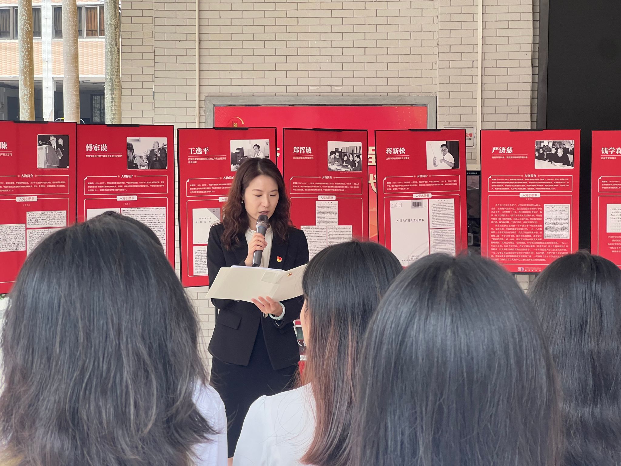 10月29日下午,社会工作学院学生党支部于教学楼1楼开展“我把一生献给党——从入党志愿书读懂科学家党员的赤子之心”主题党课。学院党总支书记陈海娜以《百位著名科学家入党志愿书主题展》为引,带领青年党员重温初心使命,感悟家国情怀,汲取前行力量。