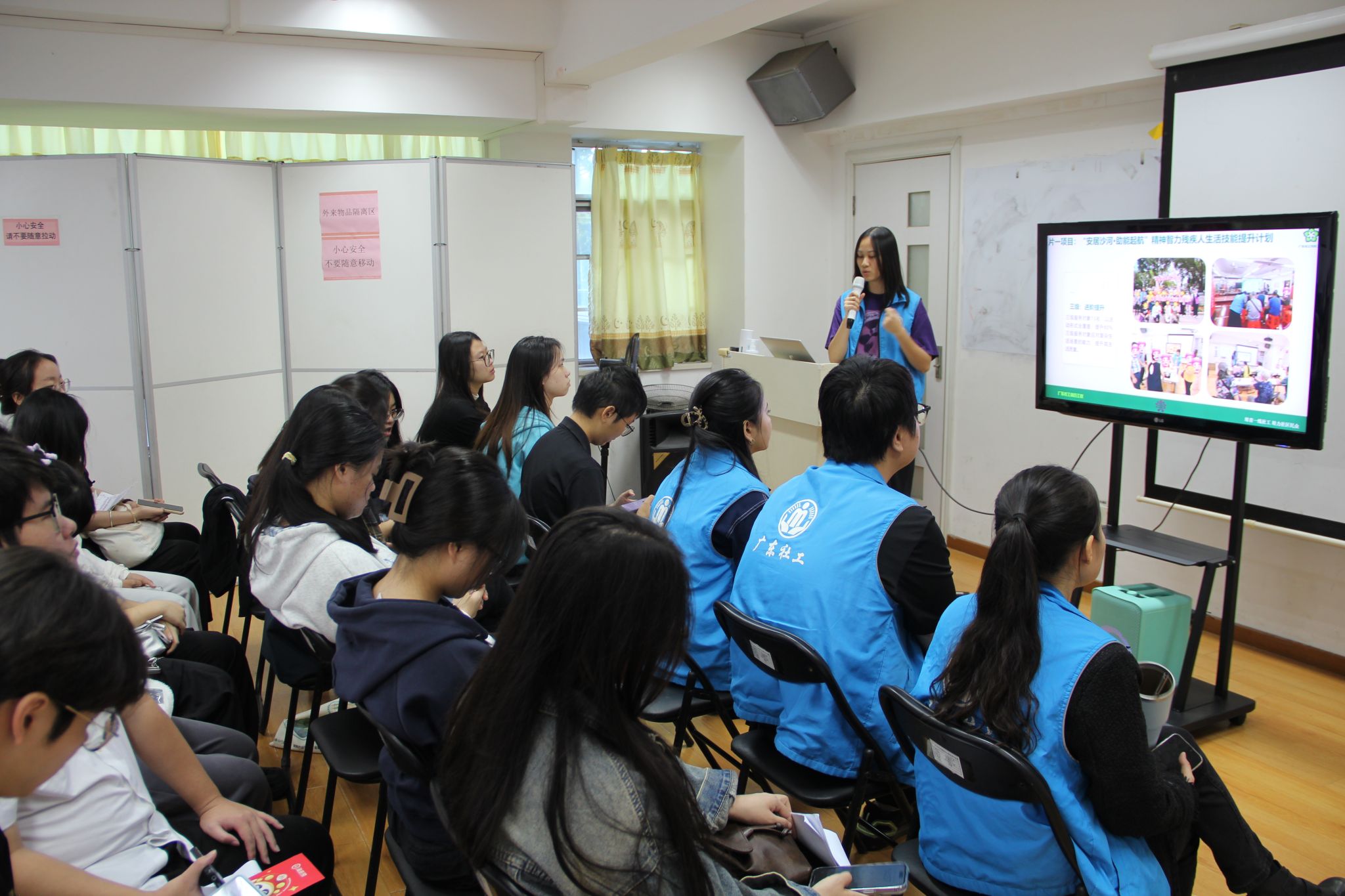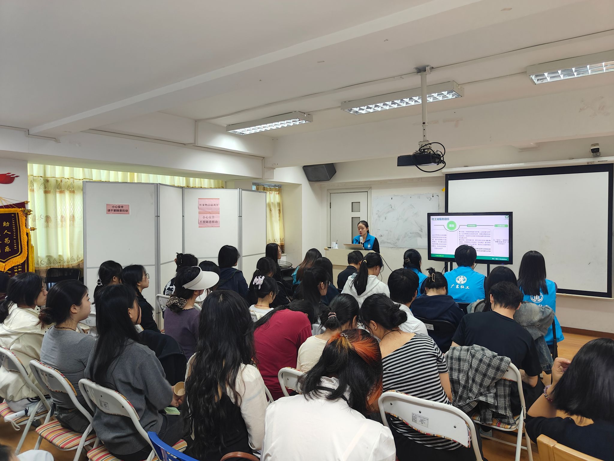 随后,社工站3位片区主管依次上台,结合各自负责的社区特点,分享片区特色服务案例。主管们通过生动的实务案例,详细讲解了如何针对不同社区、不同服务人群的需求,设计与实施个性化、专业化的社会工作服务。案例分享过程中,同学们不时点头共鸣,对“片区服务差异化适配社区需求” 的理念有了更深刻的理解。