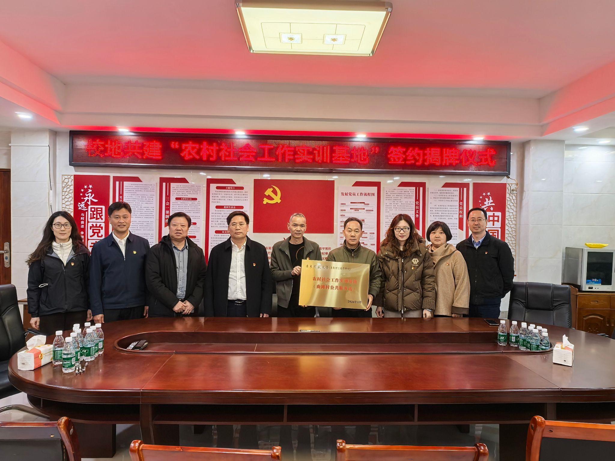 在义合镇曲滩村党群活动中心,社会工作学院与曲滩村签订校地共建协议,双方将以该基地为依托,在基层治理创新、本土社工人才培养、特色产业赋能等领域开展深度合作。